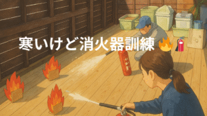 万が一の災害に備えて、避難の方法を確認します。お子さまたちも真剣に取り組んでくれると思います!