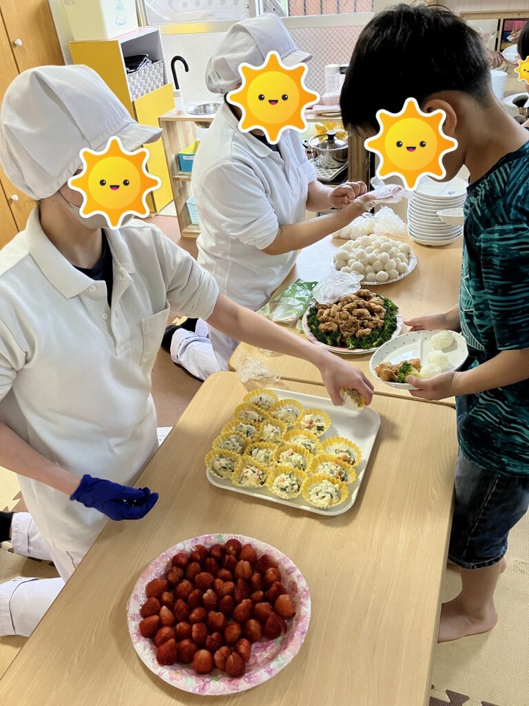 🥢「唐揚げください!」に「いちごも~!」行列のできる給食時間😆