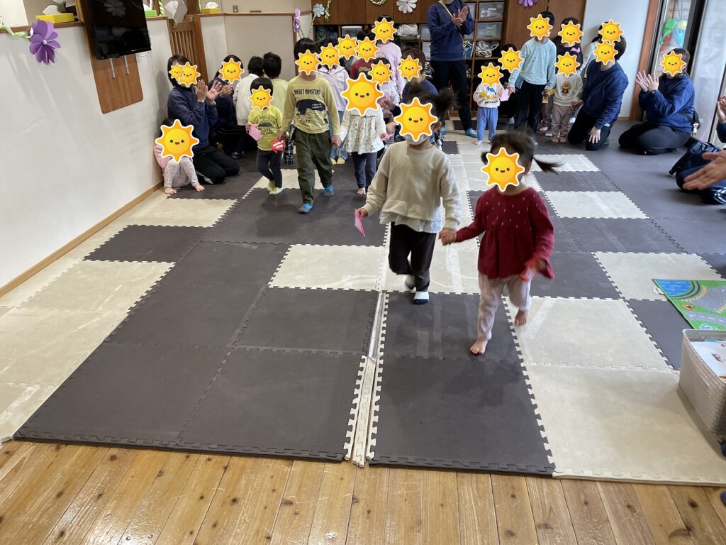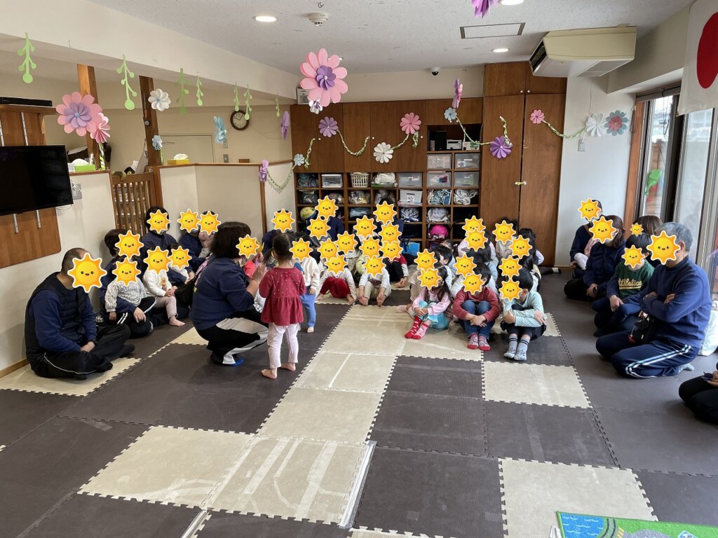 まずは、来年度から他の保育園や幼稚園に通うお友だちのお知らせをしました🌈